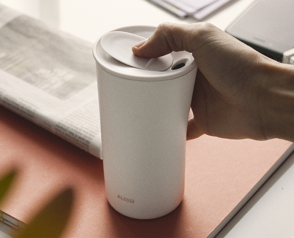 De Alessi Buri thermobeker, ontworpen door BKID, is een stijlvolle en functionele reisbeker die design en gebruiksgemak combineert. Met zijn dubbelwandige, vacuümgeïsoleerde constructie houdt hij dranken langdurig op temperatuur, zowel warm als koud. De 360° draaibare deksel maakt drinken vanuit elke hoek mogelijk, terwijl het ergonomische ontwerp zorgt voor comfortabel gebruik onderweg. De Buri thermobeker is vervaardigd uit hoogwaardige materialen en is BPA-vrij, waardoor hij veilig is voor dagelijks gebruik.