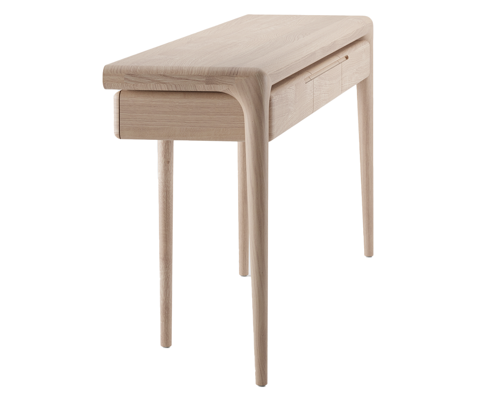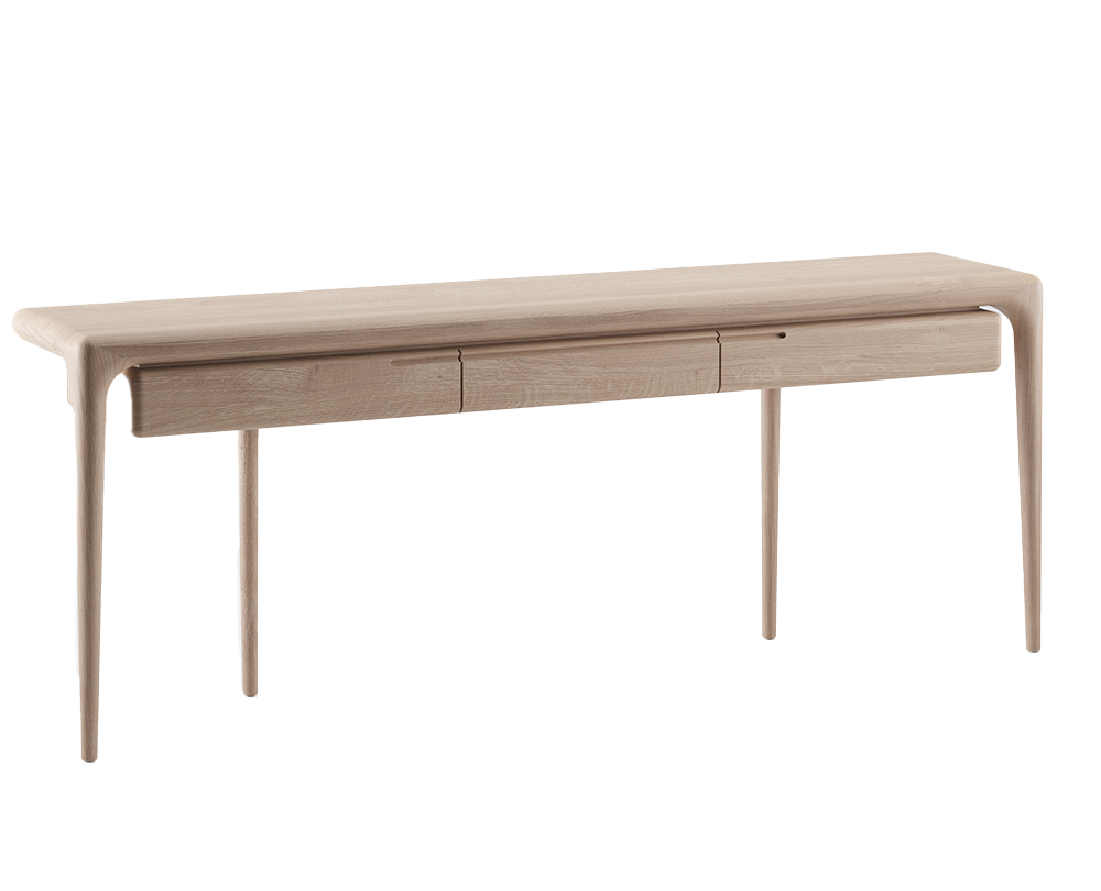 De Artisan Latus console table, ontworpen door Salih Teskeredžić, is een verfijnde uitdrukking van de kracht en poëzie van massief hout. De Latus-collectie combineert emotie, vorm en eerlijk vakmanschap met een logische, bijna architectonische benadering van hout als materiaal. Dankzij Artisan’s geavanceerde productietechnologie komen de natuurlijke nerven en structuren optimaal tot hun recht. De console is verkrijgbaar in de houtsoorten: Europees walnotenhout en essen. Het kan worden afgewerkt met natuurlijke oliën of zeep. Optioneel leverbaar met drie lades, waardoor esthetiek en functionaliteit naadloos samenkomen.