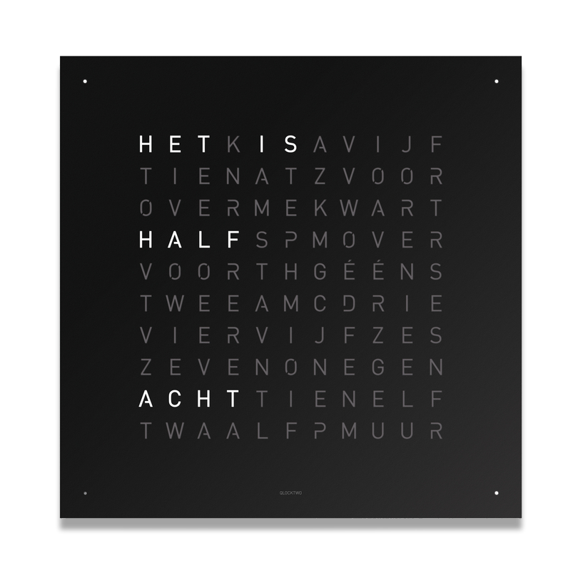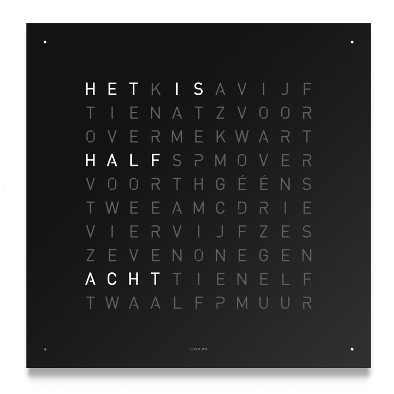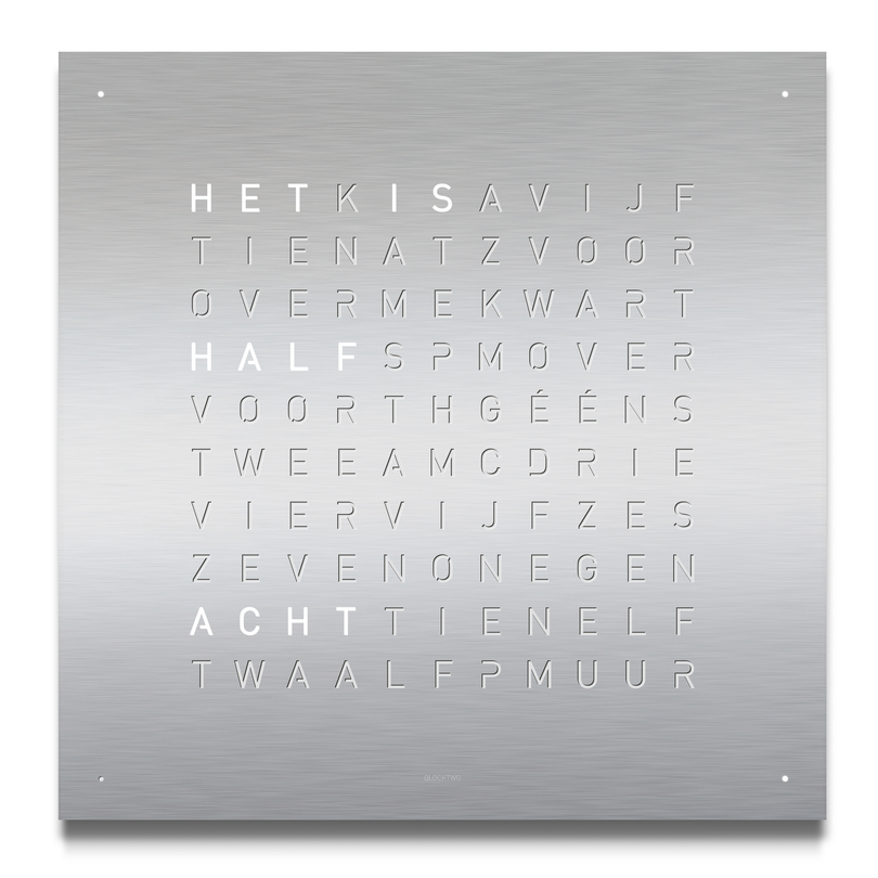 De Qlocktwo is met zijn 90 cm de grote broer van de Classic. Verkrijgbaar in metaal en als Creator's Edition.