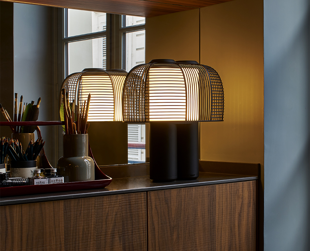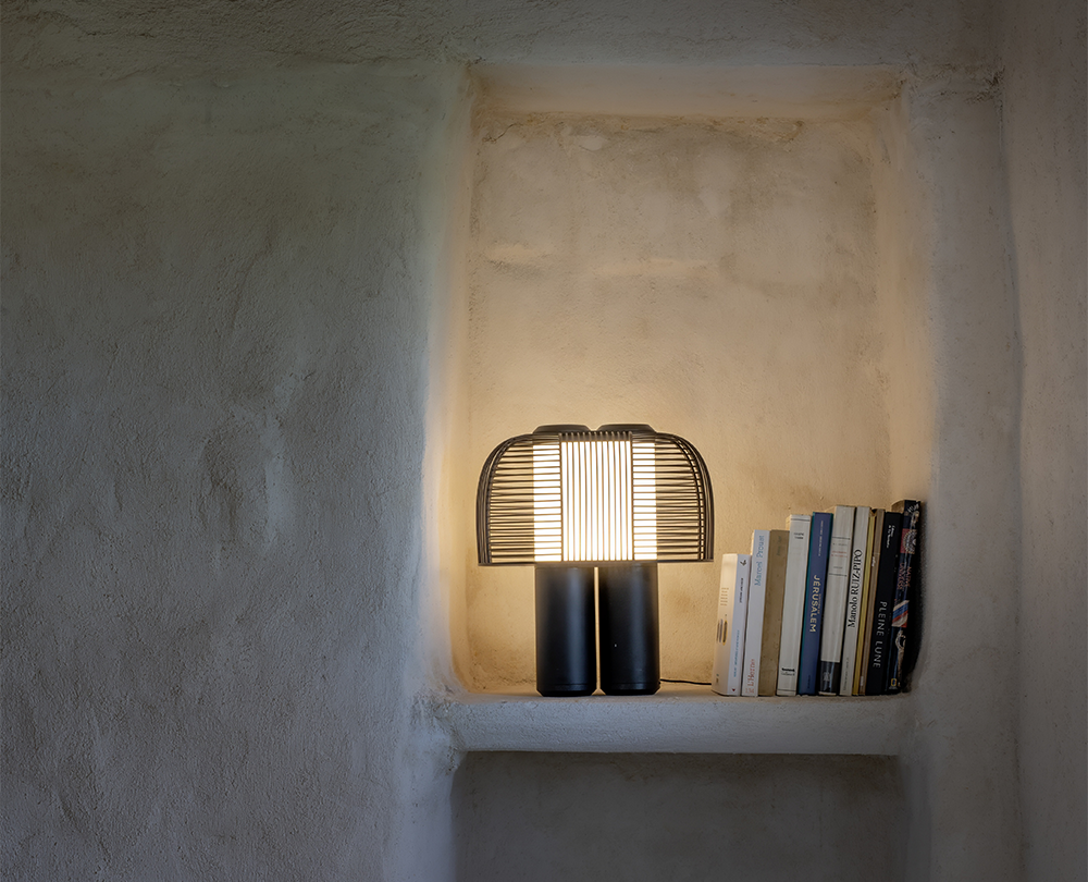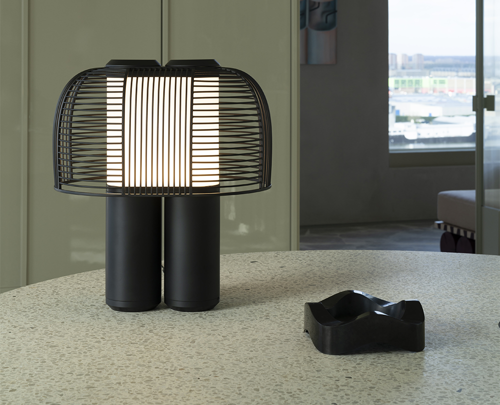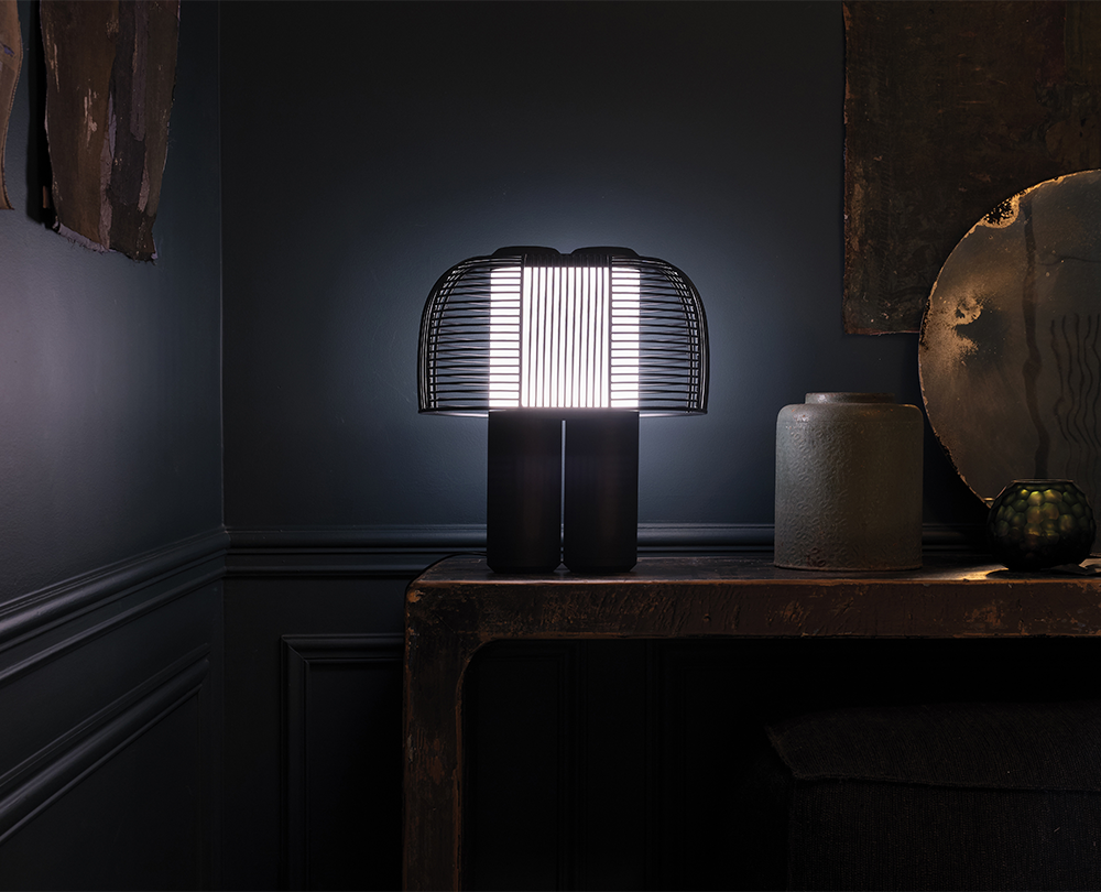 De Yasuke tafellamp van DCW Éditions, ontworpen door Grégoire de Lafforest, combineert futuristische architectuur met een sculpturale, bijna kosmische esthetiek. Met twee dimmers kunnen gebruikers zowel de helderheid als de kleurtemperatuur van het licht aanpassen, waardoor een volledig persoonlijke sfeer ontstaat. Verkrijgbaar in zes verschillende afwerkingen, is Yasuke een opvallend object dat functionaliteit en design moeiteloos samenbrengt.