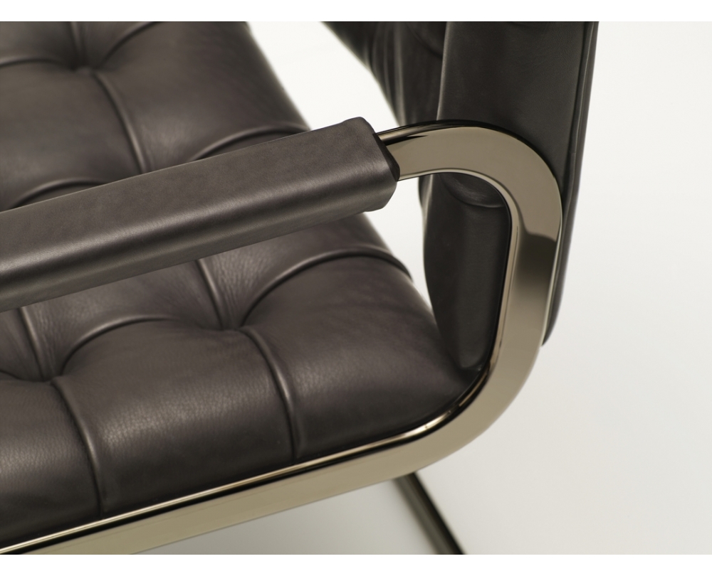 - Uitvoering RH-305/51 sledestoel met armleuningen in leder Naturale espresso, frame hoogglanzend chroom.