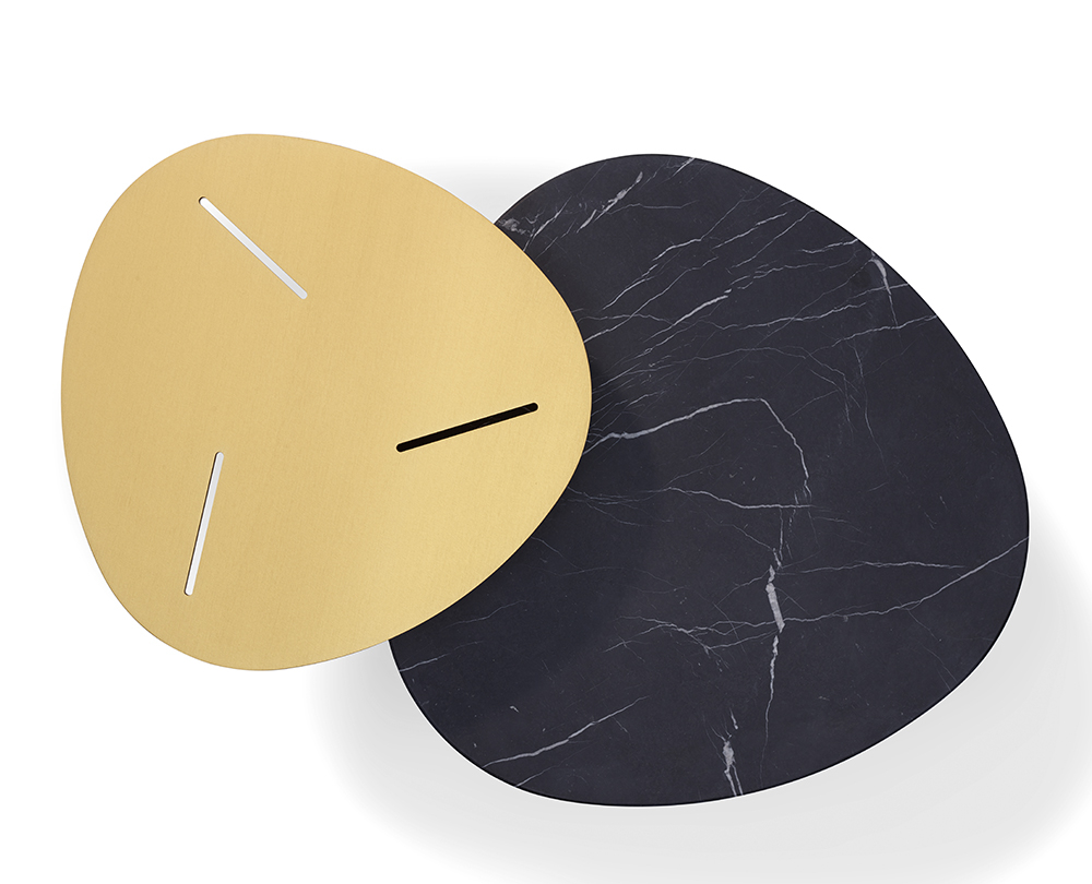 Wie op zoek is naar een bijzonder sculpturaal en toch delicaat bijzettafeltje, zal in de wolken zijn met TRILOPE. Met zijn opvallende aanwezigheid straalt hij rust uit, maar verrast hij tegelijk met zijn schijnbaar bewegende voet. De meubelcompositie van de designer Wolfgang C.R. Mezger is verkrijgbaar in varianten waarbij de materialen natuursteen en aluminium in een goud geëloxeerd oppervlak een spannende dialoog aangaan. Het trekt de aandacht. Een sterk statement in de kamer.