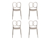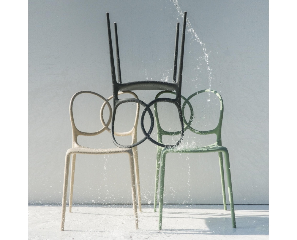 De vier stoelen zijn gemaakt van hoogwaardig polypropyleen, waardoor ze bijzonder licht zijn. De stoelen zijn stapelbaar en zowel binnen als buiten te gebruiken. Het ontwerp van de sculpturale set van Driade Sissi tuinstoel set van 4 is een eerbetoon aan vroeger en een eerbetoon aan ronde houten meubelen in Wenen aan het einde van de 19e eeuw. De rugleuning, die bestaat uit twee overlappende ringen, lijkt handgemaakt. De naam Sissi staat voor een uitgekiend lijnenspel waarbij elegante vormen worden gecombineerd met luchtig en modern design. Het ambitieuze stel en ontwerpersduo Palomba heeft talloze prestigieuze prijzen gewonnen voor hun opvallende ontwerpen, waaronder de Red Dot en de German Design Award.