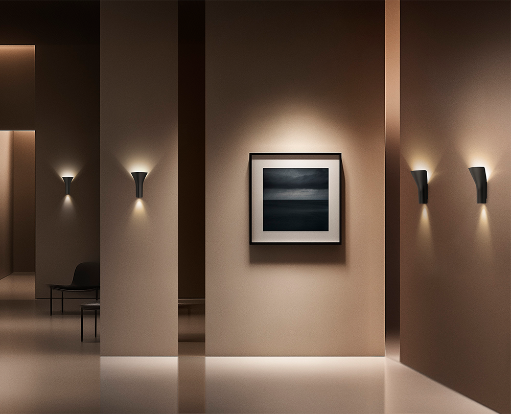 De Foscarini Torche wandlamp, ontworpen door Dordoni Studio, vertaalt het archetype van de fakkel naar een hedendaags, minimalistisch wandobject. De zachte, conische vorm in gegoten aluminium lijkt subtiel los te komen van de wand, waardoor het licht vrij naar boven kan vloeien terwijl de lichtbron wordt afgeschermd voor optimaal visueel comfort. De dubbele lichtemissie, breed en diffuus omhoog, gerichter en intiemer omlaag, transformeert muren tot architectonische lichtvlakken. Met zijn volledig matte, zijdezachte afwerking in titanium, grafiet of koper en hoogwaardige geïntegreerde LED-techniek is Torche een verfijnd en herkenbaar statement voor zowel moderne als klassieke interieurs.