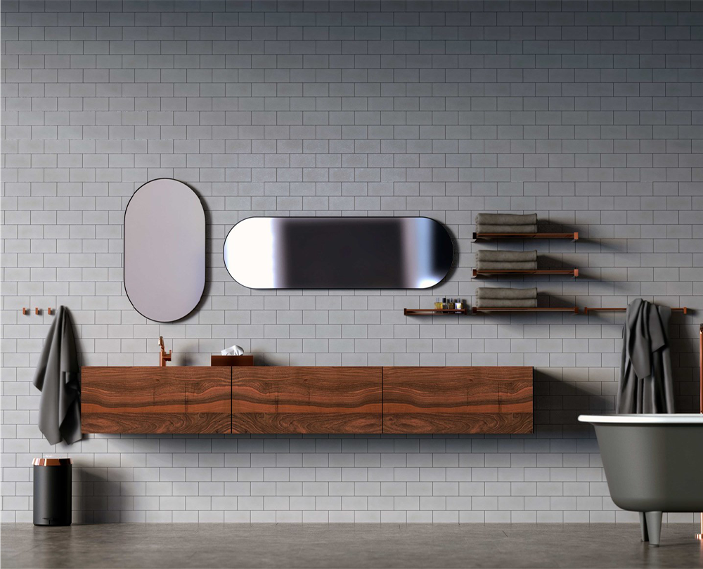 De FROST UNU 4139 spiegel is een elegant, ovaal vormgegeven spiegelobject met een smalle aluminium lijst, ontworpen door Bønnelycke MDD. Dankzij het minimalistische, grafische design voegt deze spiegel verfijnde eenvoud toe aan elke ruimte. Hij is ideaal voor de inkomhal, slaapkamer of badkamer en kan zowel horizontaal als verticaal worden opgehangen, waardoor hij flexibel inzetbaar is in uiteenlopende interieuropstellingen. De strakke, Scandinavische esthetiek en hoogwaardige materiaalkeuze maken de UNU 4139 tot een tijdloze aanvulling op moderne interieurs.