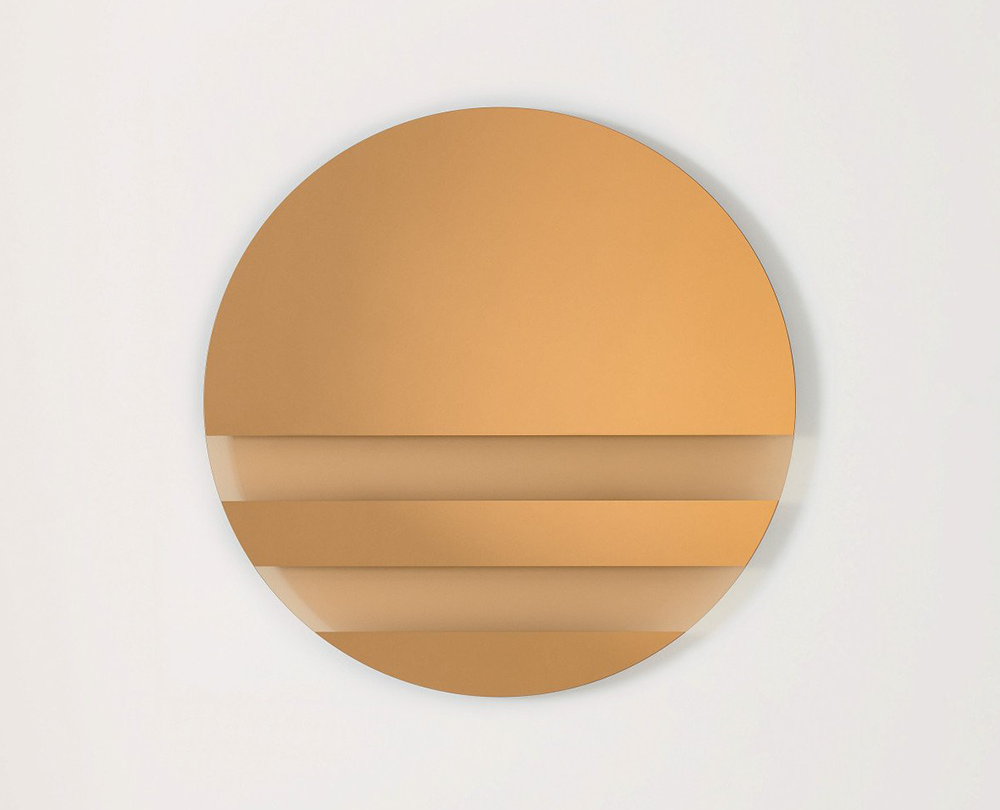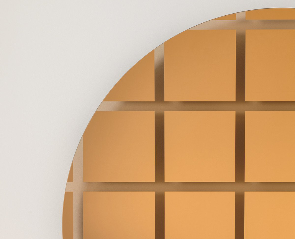 De Andromeda spiegelcollectie (1974), ontworpen door Nanda Vigo voor Glas Italia, is een iconisch voorbeeld van Italiaans design. De spiegels combineren spiegelende en transparante vlakken in neutraal of amberglas en creëren zo een intrigerend negatief-positief effect. Dankzij de verschillende vormen en maten kan de spiegel zowel functioneel als sculpturaal toegepast worden, waardoor het een tijdloos statementstuk is in ieder interieur.