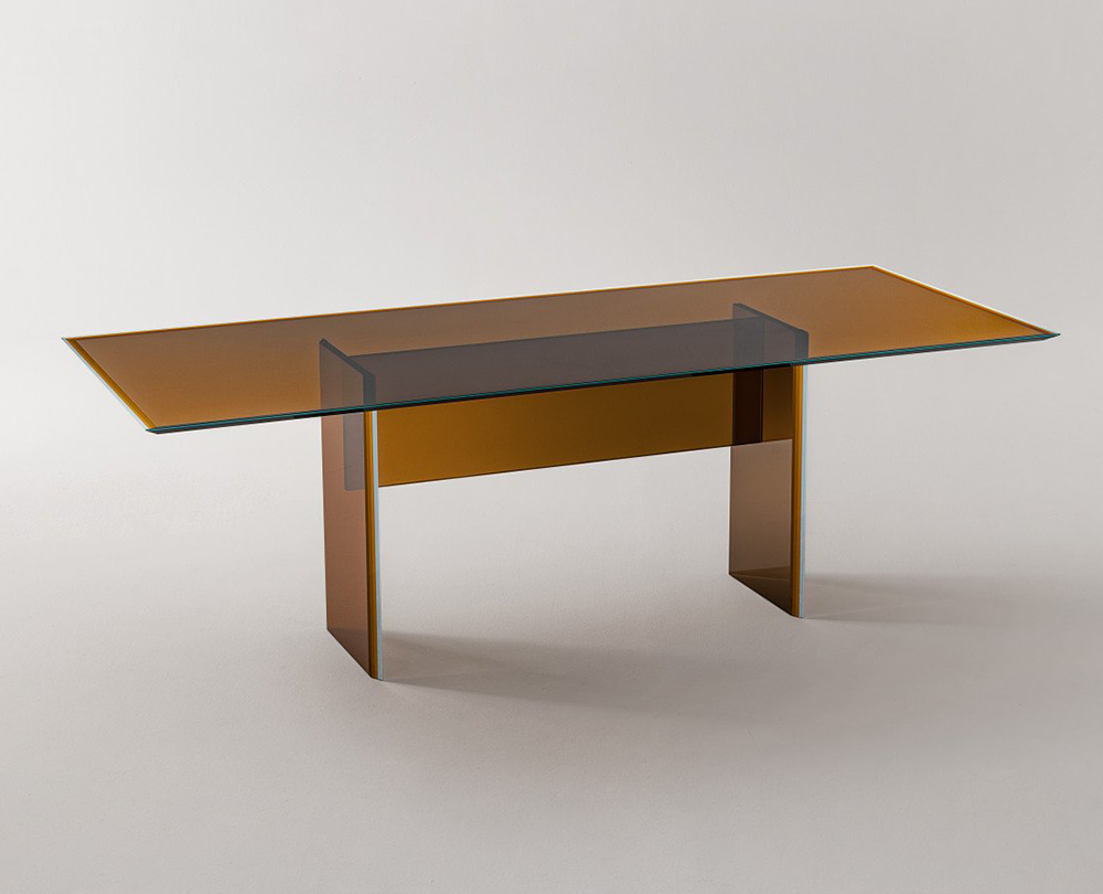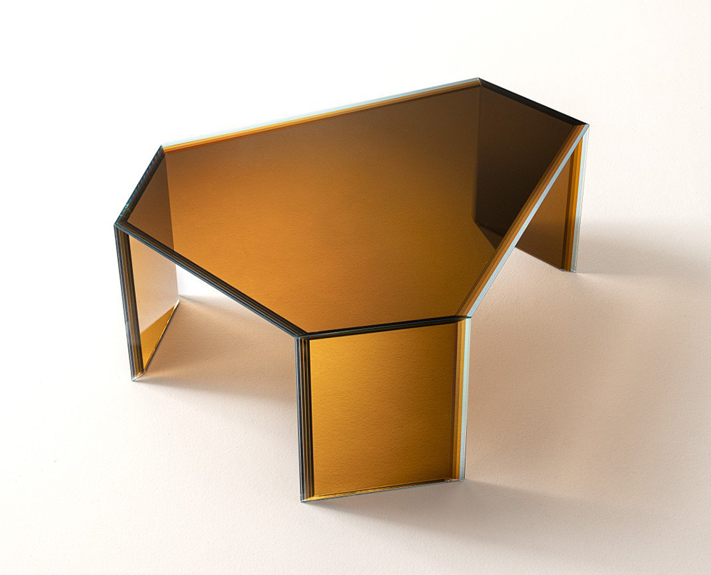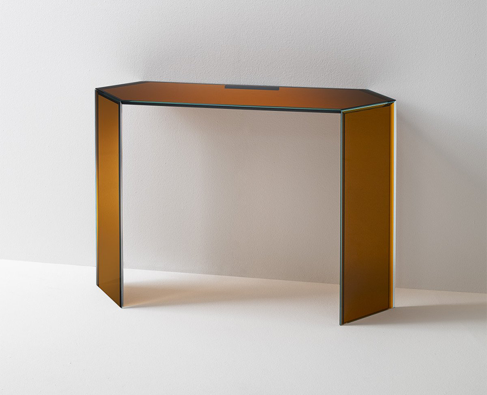 Dankzij een speciale verlijmingstechniek worden de afzonderlijke glaspanelen naadloos samengevoegd, waardoor een uiterst verfijnde, bijna sculpturale vorm ontstaat. Het resultaat is een meubelstuk dat evenveel kunstwerk als functioneel object is — een waar “juweel van glas”, waarin vakmanschap, precisie en poëtisch design samenkomen.