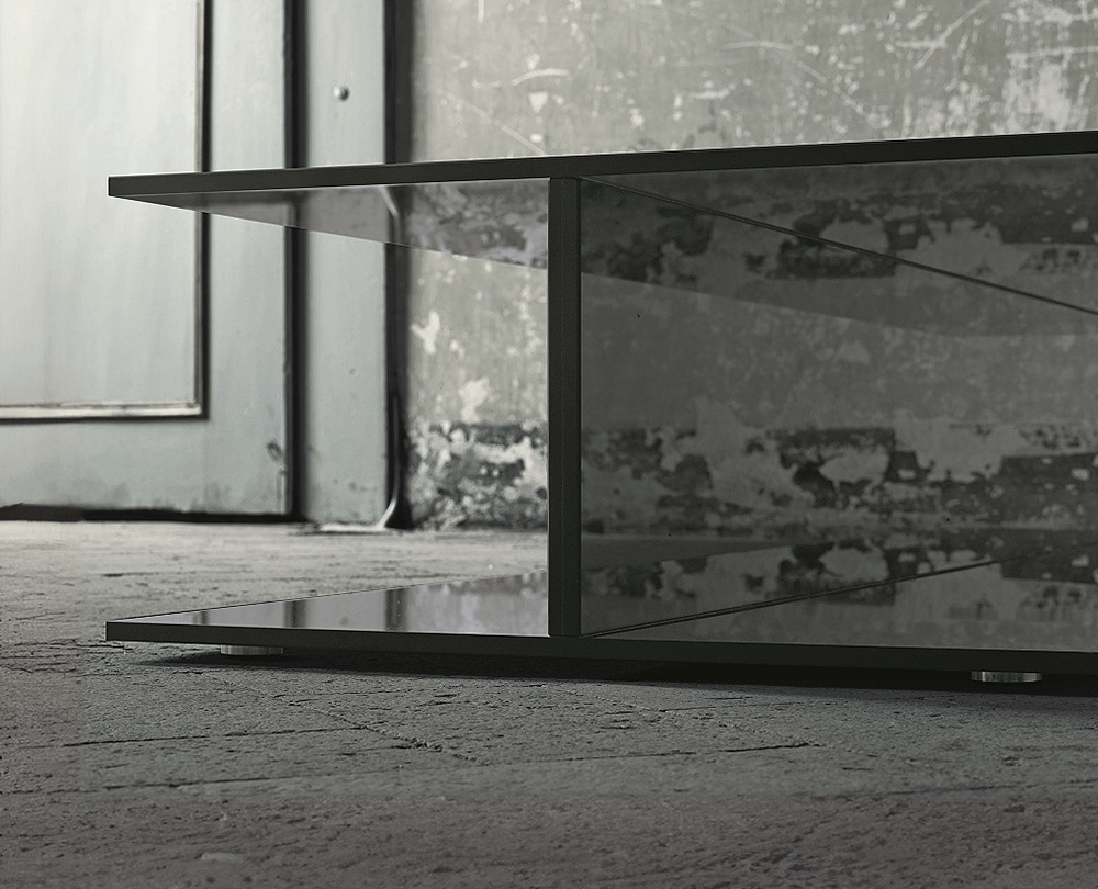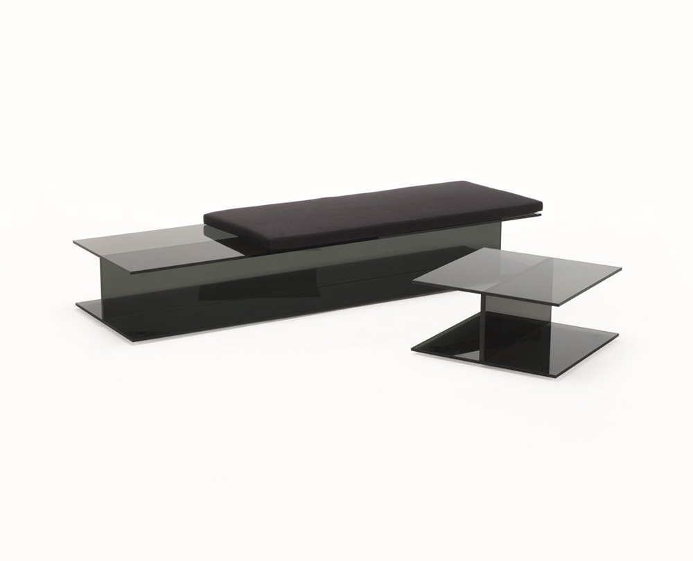De I-Beam collectie van Jean-Marie Massaud voor Glas Italia is een meesterlijke studie in minimalisme en materialiteit. Met slechts drie glasplaten – een bovenblad, een verticale steun en een basis – creëert Massaud een meubel dat refereert aan constructiestaal (zoals een I-profiel), maar dan uitgevoerd in glas. Het bovenblad en de basis zijn van 12 mm gehard glas, de verticale steun is laminaatglas. Afgewerkt in smoked glass of transparant extralight glas. De verbindingen zijn uiterst minimaal en lineair, doch structureel sterk door speciaal lijmwerk, zodat de elementen ook als zitbank gebruikt kunnen worden. Optioneel zijn zwarte, afneembare kussens beschikbaar.