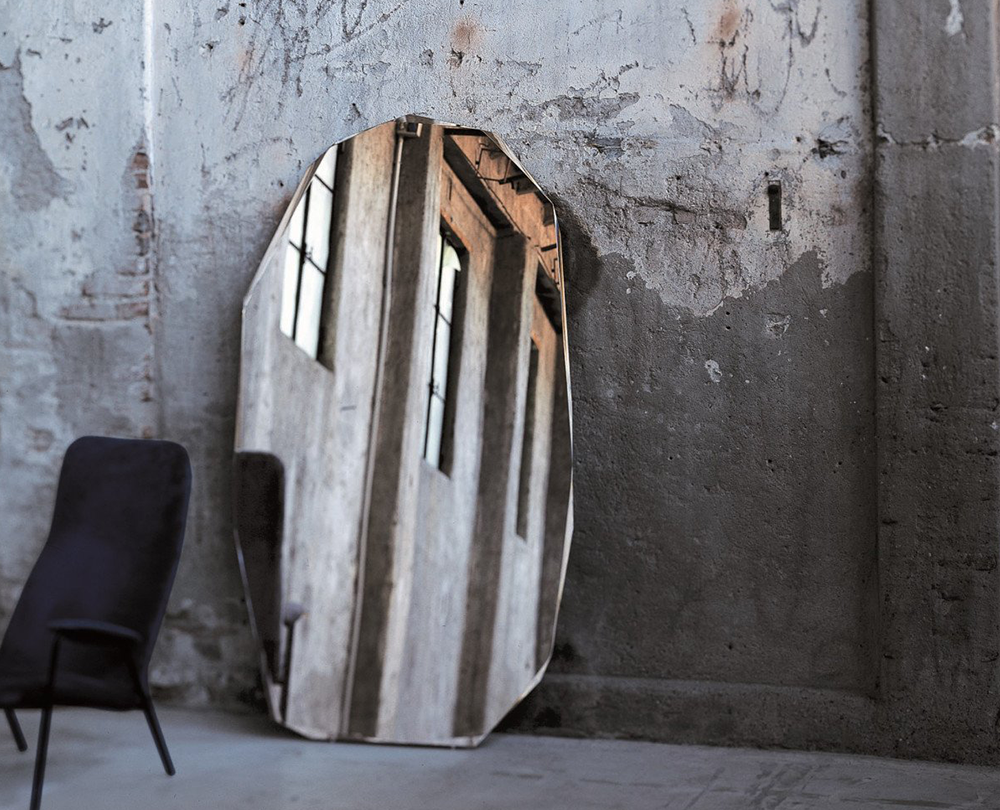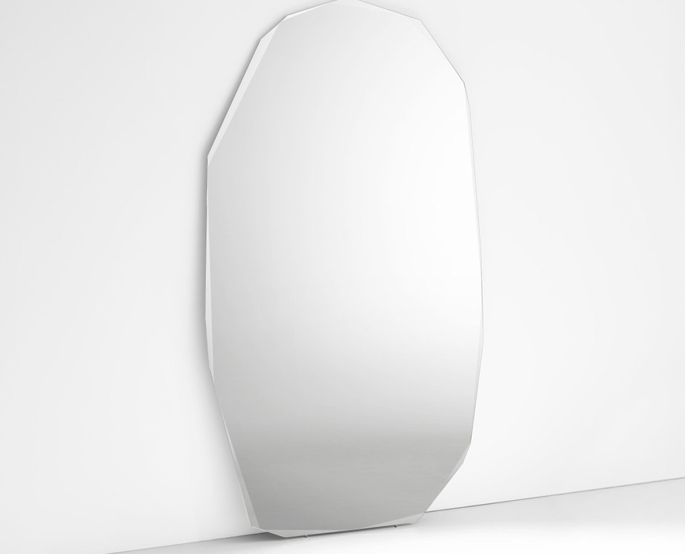 De Kooh-I-Noor Specchi spiegel van Glas Italia, ontworpen door Piero Lissoni, is een sculpturale staande spiegel geïnspireerd op de beroemde diamant. Met zijn onregelmatige vorm, facetrand en gevarieerde dieptes en hoeken, biedt het een verfijnde reflectie en een visueel statement in elke ruimte.