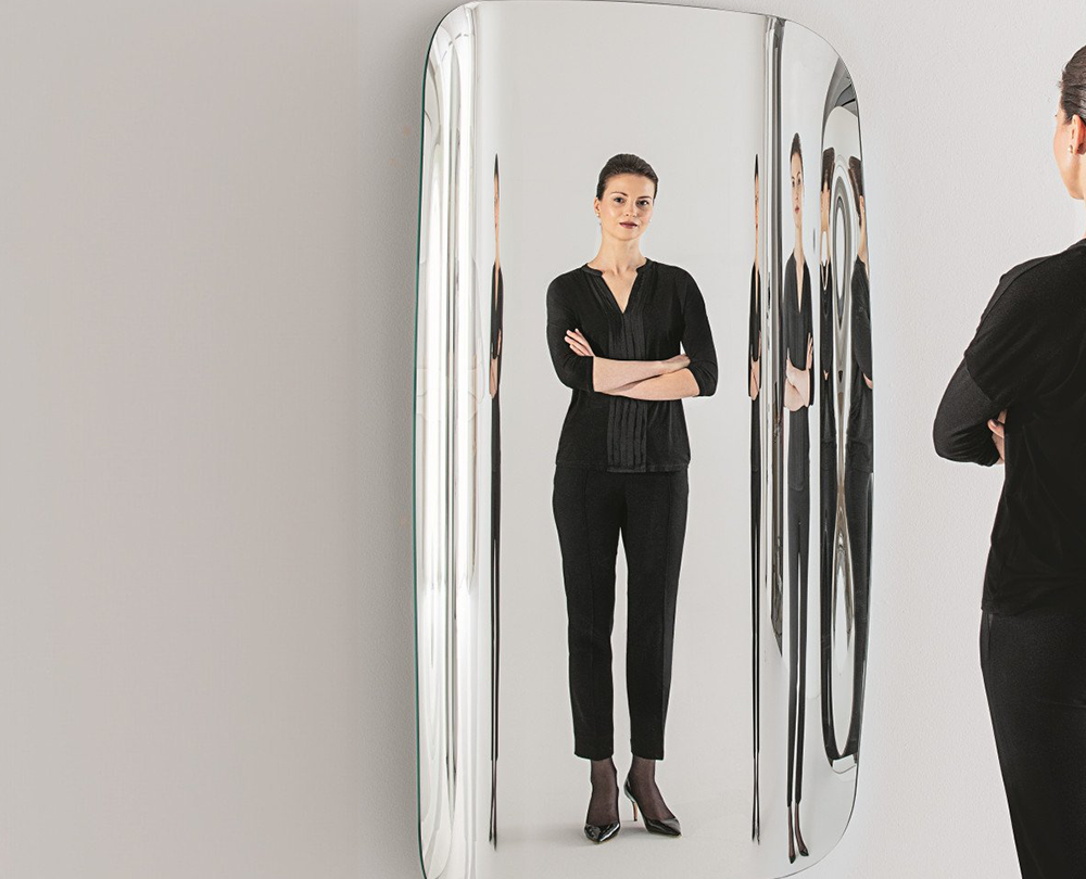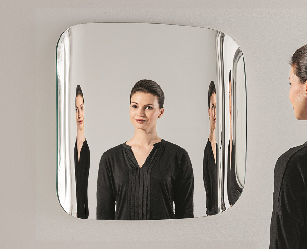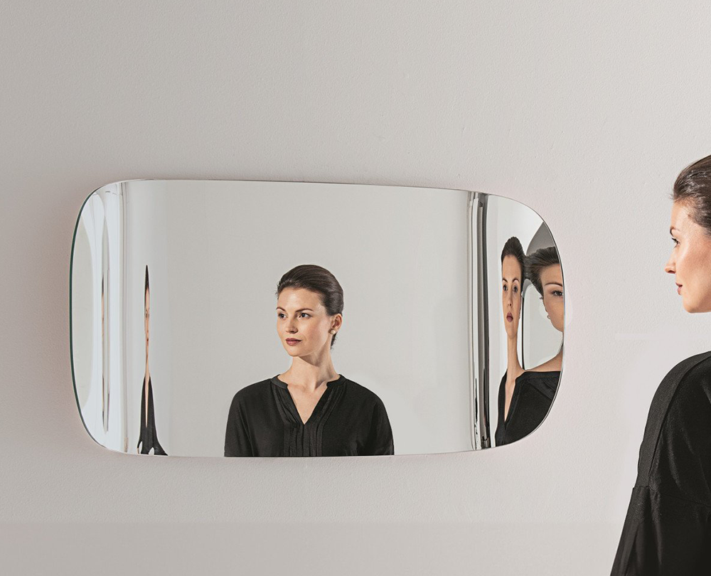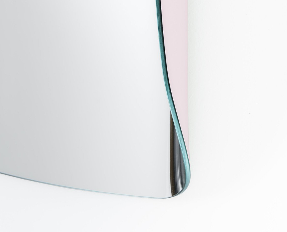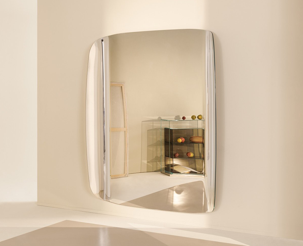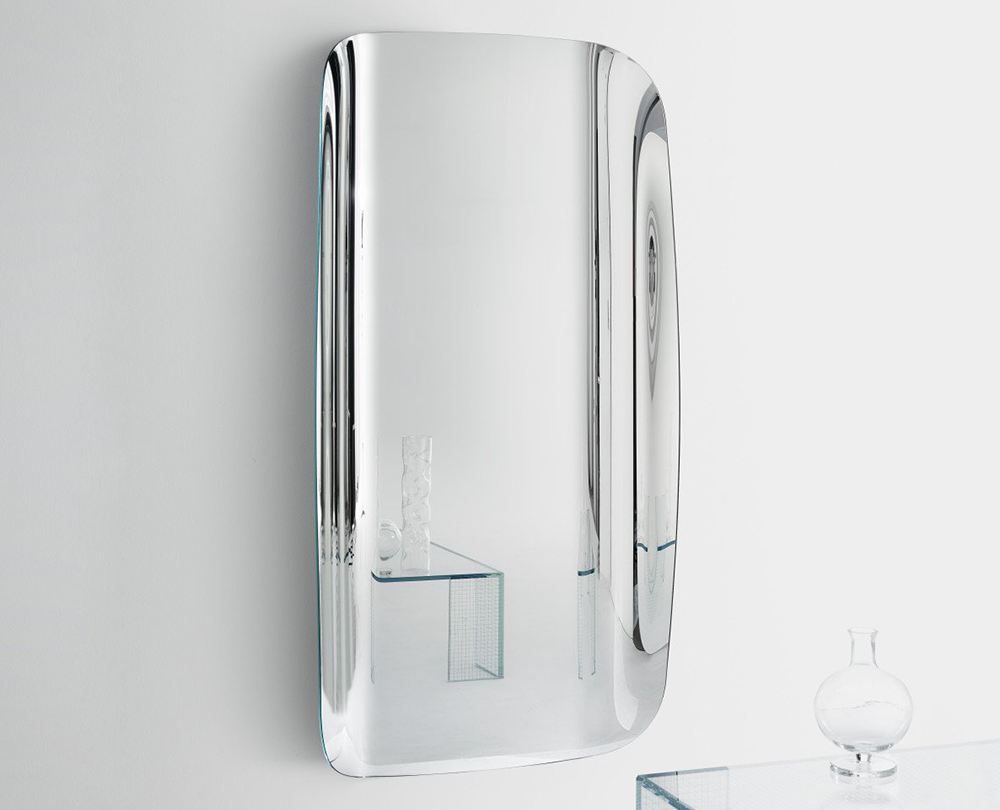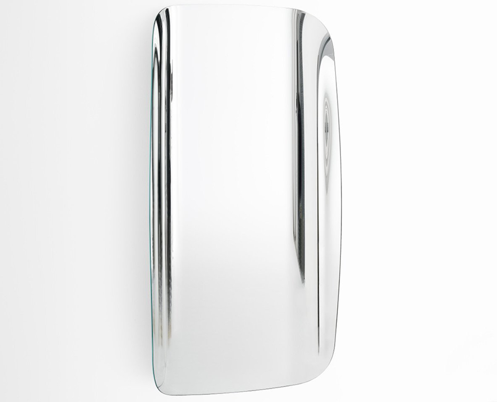 De Marlene spiegel, ontworpen door Philippe Starck, is een elegante wandspiegel van gebogen extralight glas, met de hand gepolijst en gesilverd. Het centrale deel biedt een zuivere reflectie, terwijl de gebogen zijkanten een speels vervormend effect creëren. De achterzijde is verkrijgbaar in roze, wit of zilver. Optioneel kan de spiegel worden uitgerust met verchroomde voetjes, waardoor ook plaatsing op de vloer mogelijk is.