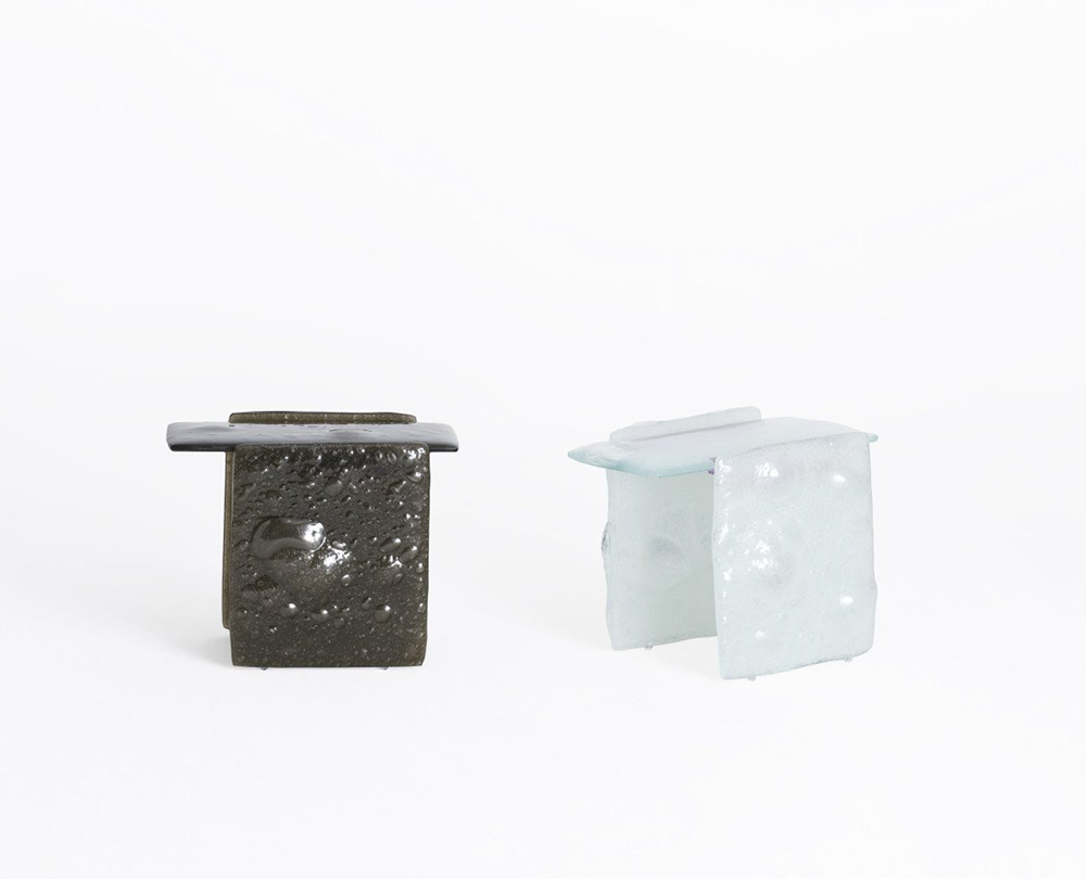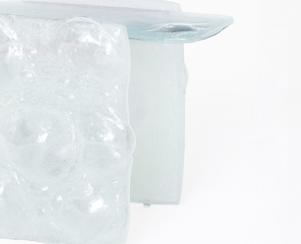 De lage salontafel OPA03 is vervaardigd uit gefuseerd glas, waarbij reststukken met speciale additieven zijn samengesmolten tot een unieke, golvende textuur met bubbels. Het sculpturale en elegante ontwerp vangt licht op een bijzondere manier en voegt karakter toe aan moderne interieurs. De tafel is verkrijgbaar in extralight (helder) of bronze (bronskleurig) glas. De poten zijn afneembaar en bevestigd met aluminium joints, beschikbaar in zilver, roze, groen of brons, zodat de tafel makkelijk kan worden afgestemd op verschillende interieurstijlen. Minimalistische vormen en hoogwaardige materialen maken OPA03 zowel functioneel als een opvallend designobject.