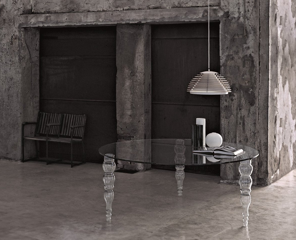 De ronde tafels van de Post Modern-serie, ontworpen door Piero Lissoni voor Glas Italia, combineren een minimalistische esthetiek met hoogwaardige materialen. Het tafelblad is verkrijgbaar in transparant, transparant extralight of glanzend gelakt glas. De poten zijn vervaardigd uit gevormd en geslepen borosilicaatglas, wat zorgt voor een lichte en elegante uitstraling. Deze ronde tafels zijn beschikbaar in zowel hoge als lage uitvoering en kunnen zelfstandig worden gebruikt of gecombineerd met andere tafels uit de Post Modern-serie. Ze passen perfect in moderne interieurs.