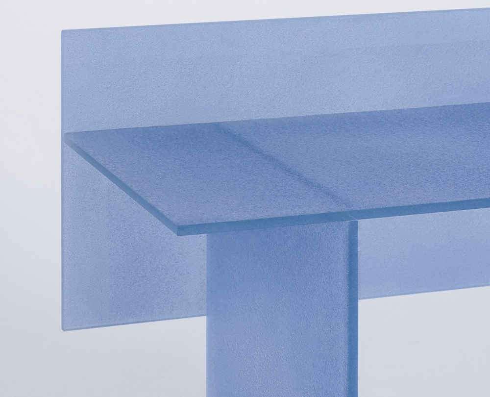 De Simoon desk, ontworpen door Patricia Urquiola voor Glas Italia, is een transparant en sculpturaal bureau van 12 mm dik extralight glas met een subtiel gepolijst oppervlak van Muranoglas-granulaat. Verkrijgbaar in de kleuren amethist, lichtblauw en topaas. Voor een andere kleur kunt u contact opnemen.