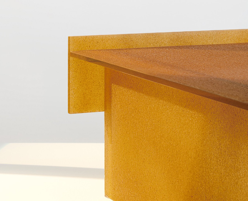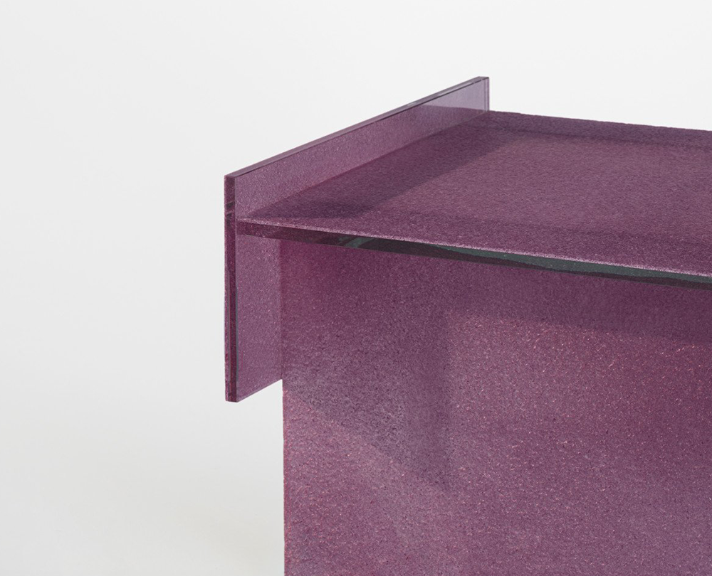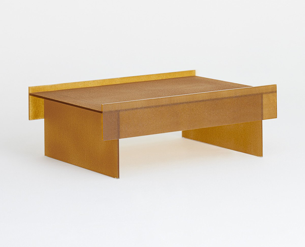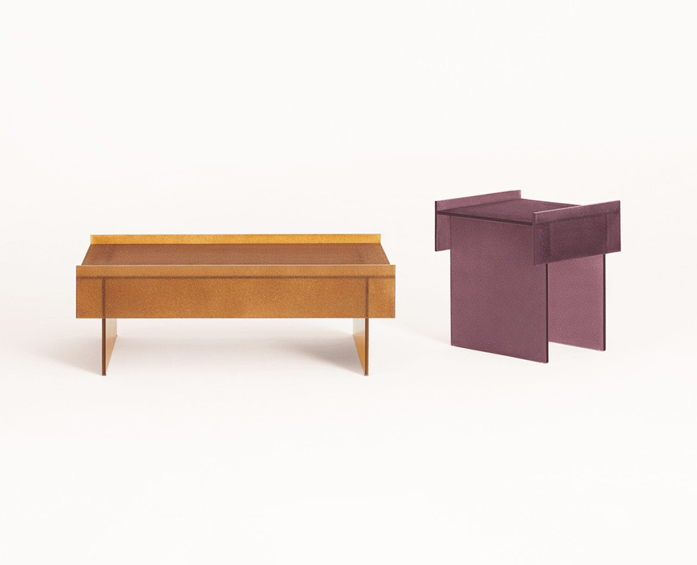 De lage tafels uit de Simoon-collectie, ontworpen door Patricia Urquiola voor Glas Italia, combineren verfijnde ambacht met een lichte, transparante uitstraling. Ze zijn vervaardigd uit 12 mm dik extralight glas met een subtiel gepolijst oppervlak van Muranoglas-granulaat. Verkrijgbaar in de transparante kleuren amethist, lichtblauw en topaas. De tafels zijn beschikbaar in diverse formaten en vormen. Voor een specifieke maat in een bepaalde kleur kunt u contact opnemen.