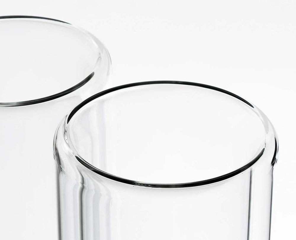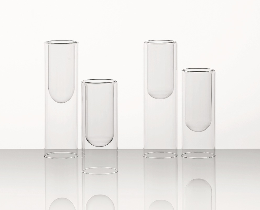 Tutube, ontworpen door Marc Krusin voor Glas Italia, is een collectie cilindervormige vazen van transparant borosilicaatglas. Dankzij een verfijnde en complexe blaastechniek ontstaat aan de binnenzijde een holte die naadloos overgaat in de buitenvorm, wat een fascinerend visueel effect creëert. De pure eenvoud van de vorm benadrukt de technische perfectie en helderheid van het glas. De vazen zijn verkrijgbaar in twee verschillende hoogtes, waardoor ze zowel afzonderlijk als in combinatie een harmonieus geheel vormen.