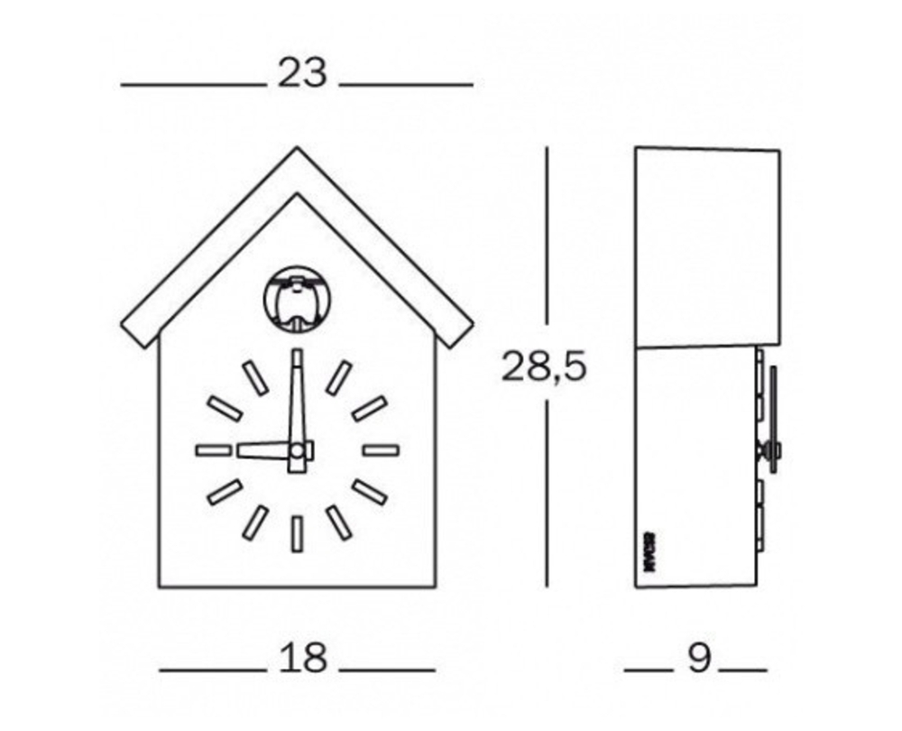 Magis Cu-Clock - Koekoeksklok Naoto Fukasawa staat bekend om zijn minimalistische ontwerpen. Ook de Cu-klok draagt een unieke handtekening van deze ontwerper. Vervaardigd door het Italiaanse bedrijf Magis sinds 2011, combineert Cu-Clock op unieke wijze Japans minimalisme met Italiaans design en Duitse traditie. De minimalistische koekoeksklok is een tegenstrijdigheid op zich, aangezien de originele Zwarte Woud-klokken wereldwijd bekend staan om hun vele ornamenten en decoraties. Fukasawa heeft zijn nieuwe interpretatie van de koekoeksklok tot een minimum beperkt, zodat deze alleen een schuin dak heeft en een koekoek die doet denken aan het origineel uit het Zwarte Woud. De hanger, kettingen en houten ornamenten werden niet overgenomen. De Cu-Clock op batterijen is volledig gemaakt van ABS en wordt vervaardigd met behulp van een standaard injectieprocedure. De basiskleuren van het huis en de vogel zijn altijd wit, het dak is verkrijgbaar in vier verschillende kleuren (blauw, oranje, groen, wit).