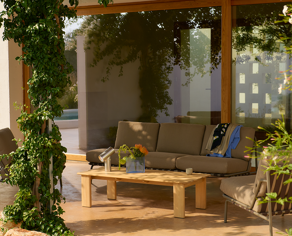 De Muuto Assemble salontafel, ontworpen door Muuto, herinterpreteert buitenmeubilair met een focus op materiaalzuiverheid en verfijnde detaillering. Gemaakt van teakhout straalt de tafel een warme, natuurlijke uitstraling uit, versterkt door brede planken en subtiel afgeronde randen. De lichte naad tussen de houten delen laat het materiaal op natuurlijke wijze werken met de seizoenen en creëert tegelijk een rustig ritme in het oppervlak. De Assemble salontafel nodigt uit om samen te komen en te ontspannen, en vormt zo een tijdloos en tactiel middelpunt in elke buitenruimte.