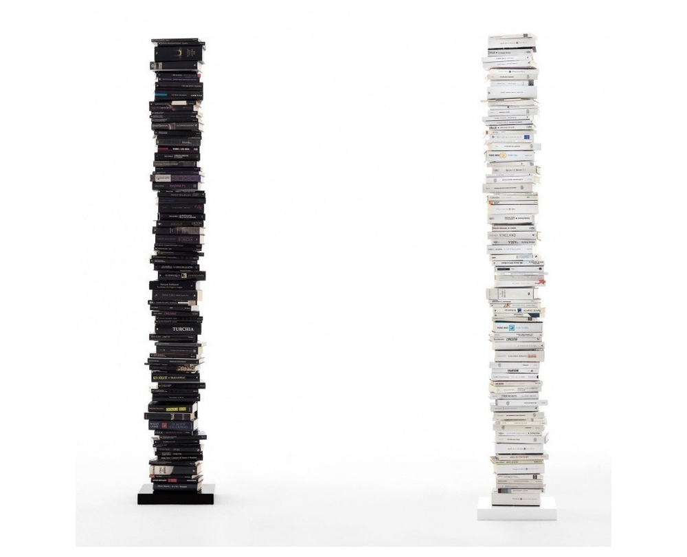 Dit product is de originele, ontworpen door ontwerper Bruno Rainaldi voor de fabrikant Opinion Ciatti. De schotjes waar de boeken op liggen staan afgewisseld schuin. Zet je hem helemaal vol met boeken dan 'zie je de kast niet meer'. Dan krijg je een optische illusie van een stapel boeken die schots en scheef staat.