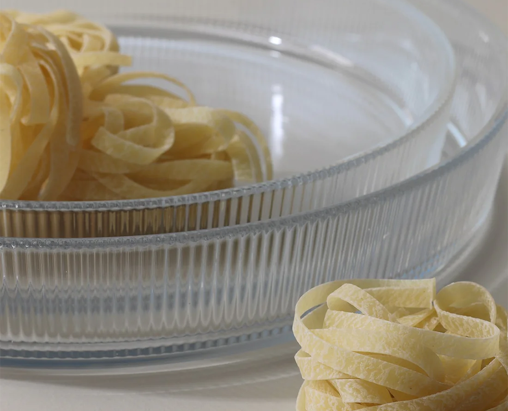 De Stelton Pilastro ovenschaal Ø 24 cm, ontworpen door Francis Cayouette voor Stelton, is een elegante en tijdloze ovenschaal binnen de Pilastro-serie, geïnspireerd op Art Deco. De schaal is uitgevoerd in geribbeld, transparant borosilicaatglas en combineert een minimalistische esthetiek met functionele duurzaamheid. Met een inhoud van 1,2 liter en een compact formaat van 24 × 24 cm is hij ideaal voor dagelijkse gerechten én speciale gelegenheden. Het hittebestendige glas maakt hem geschikt voor ovengebruik en zorgt ervoor dat je hem direct van oven naar tafel kunt serveren. Dankzij het verfijnde ribbelpatroon krijgt elke tafelpresentatie een stijlvolle, rustige uitstraling. De schaal is vaatwasmachinebestendig (max. 55 °C) en ontworpen om lang mee te gaan, waarbij functionaliteit en design naadloos samenkomen in een praktisch en decoratief object.
