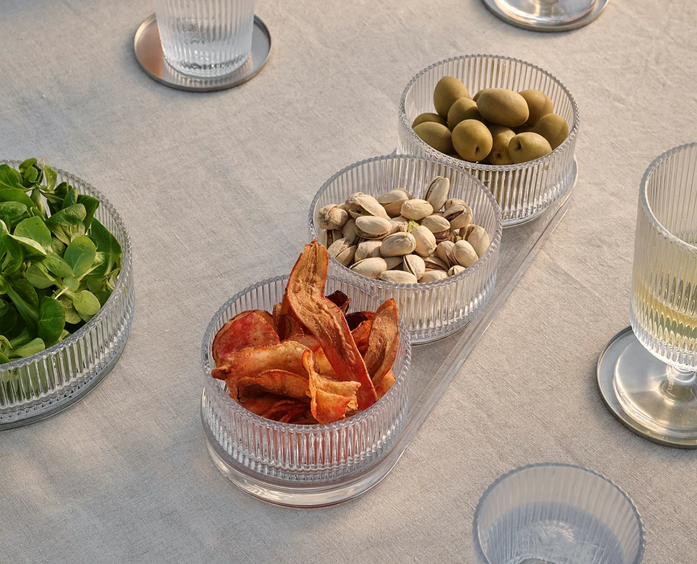 De Stelton Pilastro schaal (klein), ontworpen door Francis Cayouette, combineert elegantie met functionaliteit. Geïnspireerd door de strakke, verfijnde lijnen van Art Deco uit de jaren 1920, heeft deze kleine schaal een lengte en breedte van 15 cm en een hoogte van 5 cm, perfect voor een modern interieur. De Pilastro schaal is veelzijdig: ideaal voor het serveren van salade, pasta of desserts, maar ook decoratief te vullen met vers fruit. Gemaakt van helder glas en vaatwasserbestendig, sluit hij naadloos aan bij bijna ieder servies.
