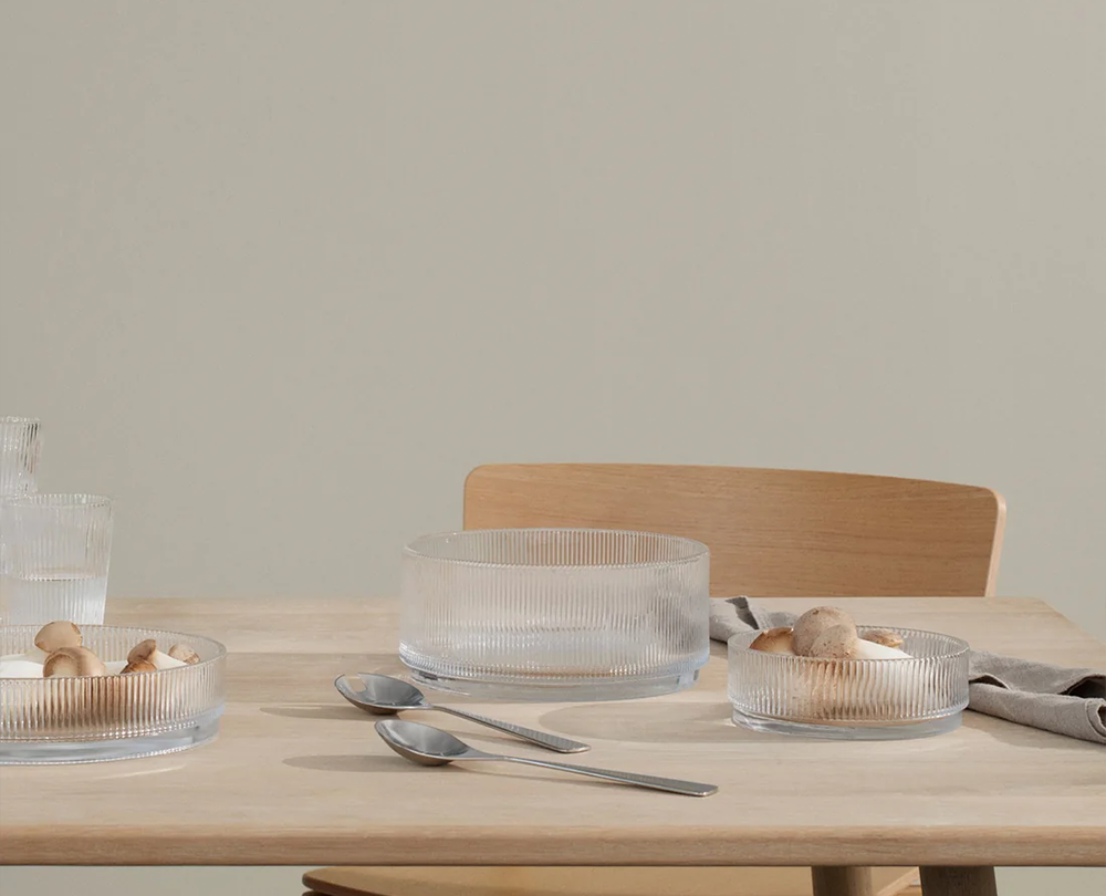 De Stelton Pilastro serving bowl (Ø21 cm), ontworpen door Francis Cayouette voor Stelton, is een veelzijdige glazen schaal die functionaliteit en elegantie moeiteloos combineert. Geïnspireerd op de verfijnde Art Deco-stijl uit de jaren 1920, kenmerkt het ontwerp zich door de kenmerkende geribbelde structuur die een subtiel spel van licht en textuur creëert. De schaal is ideaal voor het serveren van salades of fruit, maar functioneert net zo goed als decoratief object op tafel of in de keuken. Dankzij het tijdloze en moderne karakter sluit de Pilastro schaal naadloos aan bij uiteenlopende serviezen en interieurs, en combineert hij perfect met andere items uit de Pilastro-serie. Bovendien is de schaal stapelbaar en praktisch in gebruik: geschikt voor vaatwasser (tot 55 °C), magnetron en vriezer.