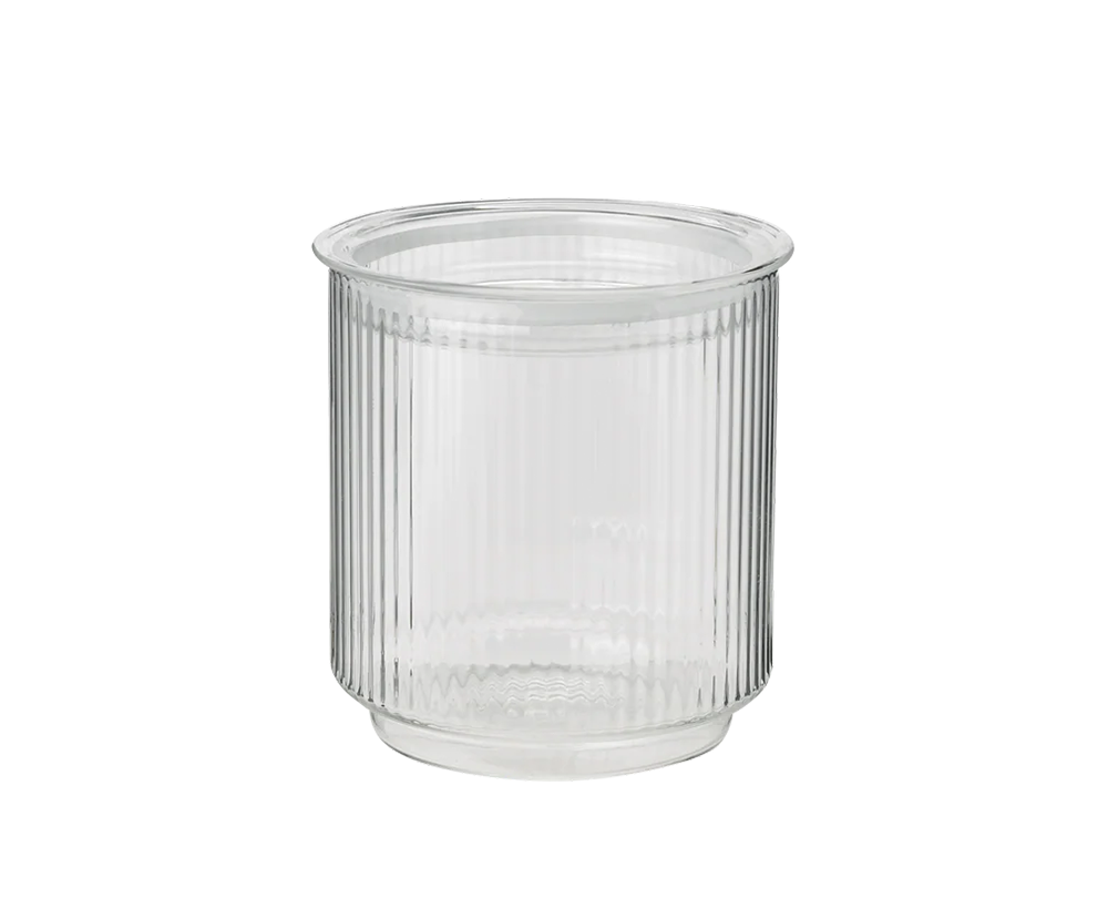 De Stelton Pilastro voorraadpot 0,6L, ontworpen door Francis Cayouette voor Stelton, is een elegante en functionele opbergoplossing in geribbeld borosilicaatglas. Het minimalistische ontwerp met subtiele Art Deco-invloeden maakt de pot een verfijnde toevoeging aan elke keuken, terwijl de compacte vorm (10 × 10 × 11 cm) ideaal is voor het bewaren van specerijen, noten, thee, koffie en andere droge ingrediënten. De luchtdichte afsluiting met siliconen afdichting helpt aroma en versheid te behouden. Dankzij het duurzame glas is de voorraadpot geschikt voor dagelijks gebruik en vaatwasmachinebestendig tot 55 °C. Een tijdloos en praktisch ontwerp binnen de Pilastro-serie, waar eenvoud, functionaliteit en duurzaamheid samenkomen.