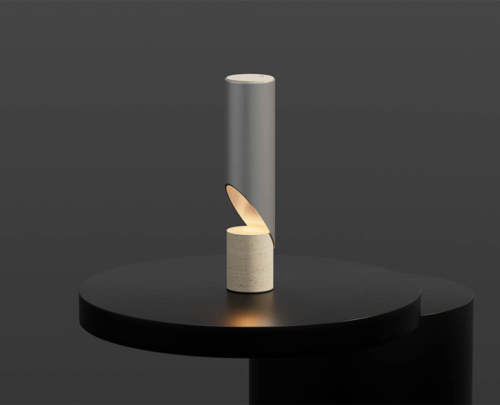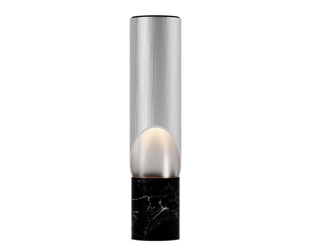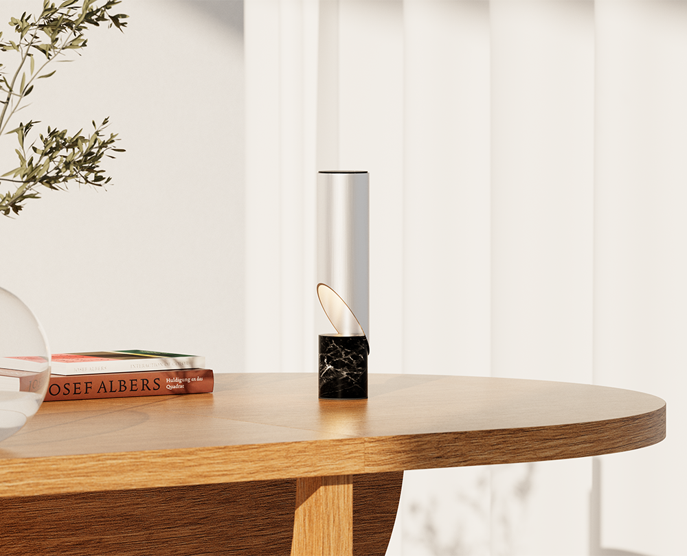 De Tecta L10 TWN tafellamp, ontworpen door Lukas Heintschel voor Tecta, is meer dan een lichtbron, het is een architecturaal object dat sfeer en emotie vormgeeft. Een minimalistische aluminium buis rust op een massieve basis van zwart marmer, travertin of beton, waardoor een krachtige geometrische compositie ontstaat. Het licht wordt gericht uitgestraald vanuit de opening van de buis en creëert een warme, verhalende gloed. Dankzij de geïntegreerde dimmer varieert de sfeer van helder en functioneel tot zacht en intiem. De oplaadbare batterij biedt zes tot acht uur autonomie, met de mogelijkheid tot gebruik via kabel. De L10 TWN balanceert tussen technisch en poëtisch, koel en warm, een lamp die licht tot een scenografisch element verheft.