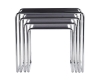 Marcel Breuer experimenteerde tijdens zijn Bauhaus-tijd met stalen buizen. Door de principes van het maken van houten meubelen toe te passen op dit nieuwe materiaal, ontstonden er diverse nieuwe meubelen met een moderne en minimalistische uitstraling, waaronder deze elegante set bijzettafels uit 1930. Ze kregen destijds een plek in de kantine van het Bauhaus-gebouw; tegenwoordig komen ze goed tot hun recht in woning- en projectinrichting.