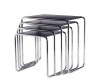 Het frame van de Thonet B9 bijzettafel beuk wordt gevormd door verchroomde buizen, het tafelblad is gemaakt van beukenhout. De handige designtafel is verkrijgbaar in vier verschillende hoogtes: 45, 50, 55 en 60 cm. De bijzettafel plaats je alleen in je interieur of als set van vier. De tafels zijn gemakkelijk in elkaar te schuiven.