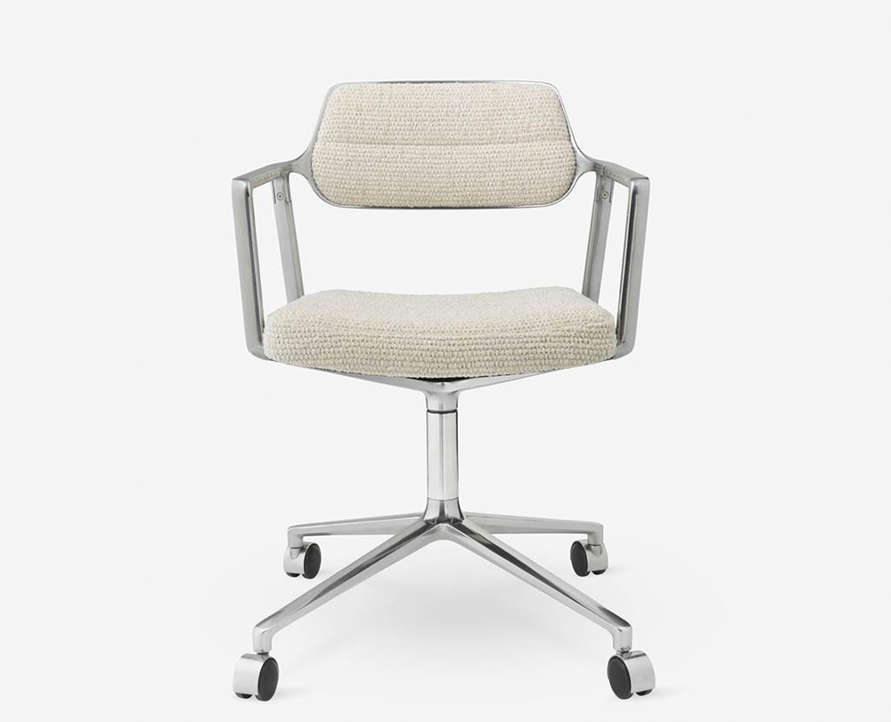 De Vipp 453 Swivel bureaustoel met wielen is de nieuwste toevoeging aan de Swivel-serie en combineert het comfort van de Vipp453+ met de stabiele vierpoots basis van de Vipp452. Deze extra gevoerde uitvoering biedt een royale rugleuning en een uitzonderlijk zachte zit, ontworpen voor langdurig comfort in zowel thuiswerkplekken als vergaderruimtes. De slanke armleuningen lopen elegant door in de subtiel gewatteerde rug, waardoor de stoel ondanks zijn solide constructie een lichte, verfijnde uitstraling behoudt. Met 360° draaibaarheid en een vierpoots onderstel op wielen biedt de Vipp 453 flexibiliteit, ergonomie en een tijdloze esthetiek die naadloos aansluit bij de Vipp-designtraditie.