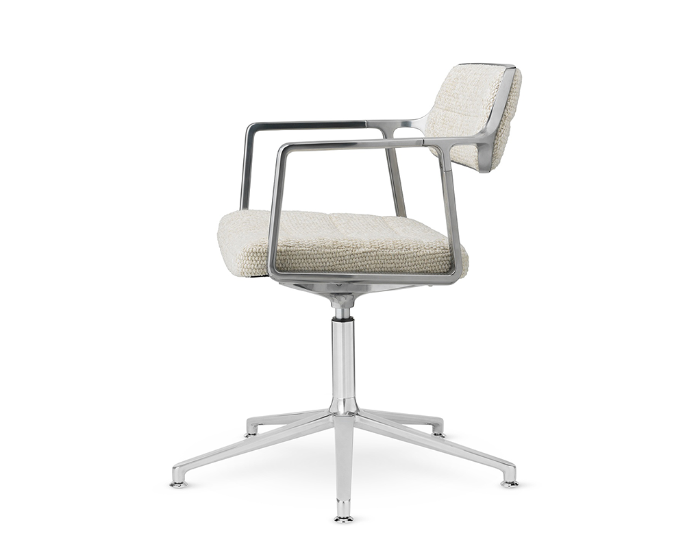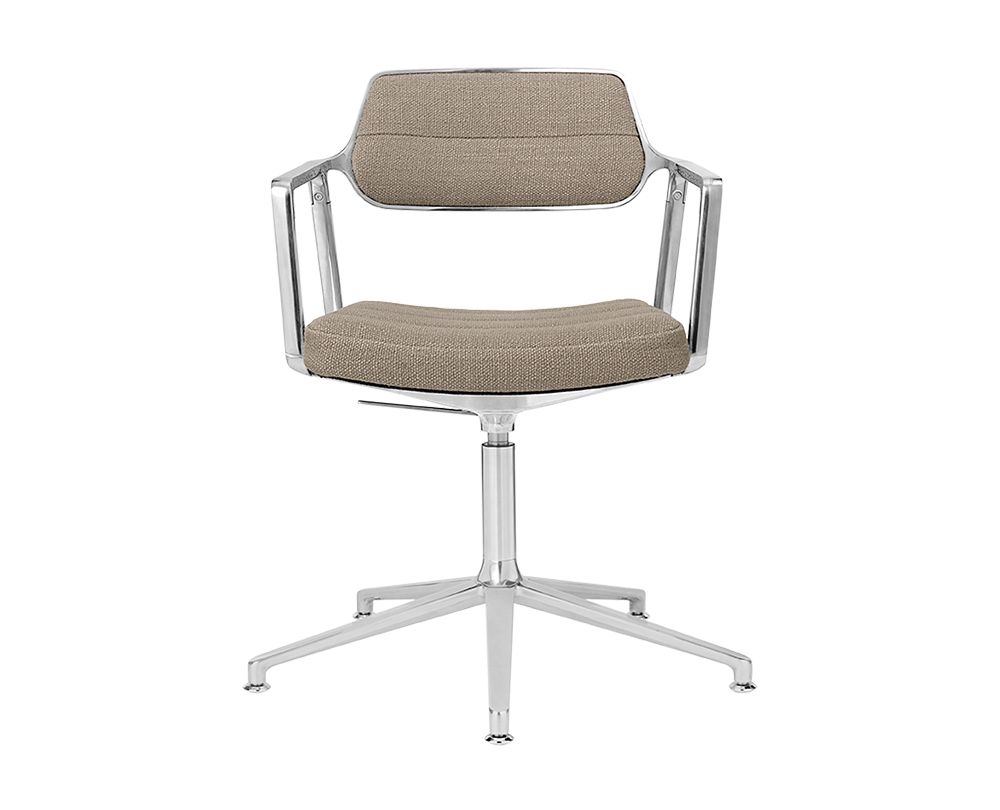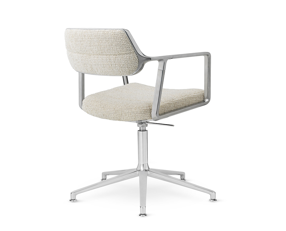 De Vipp 453 Swivel+ bureaustoel zonder wielen combineert functioneel design met hoogwaardig vakmanschap. De stoel beschikt over een gepolijst of gepoedercoat aluminium frame en is bekleed met anilineleer of textiel. Het vijfpotige onderstel met glijders zorgt voor stabiliteit en een 360° draaibare zitting. Dankzij de in hoogte verstelbare zitting (45,5–53 cm) en het kantelmechanisme past de stoel zich aan de bewegingen van de gebruiker aan, wat resulteert in een comfortabele zitervaring gedurende de hele werkdag.