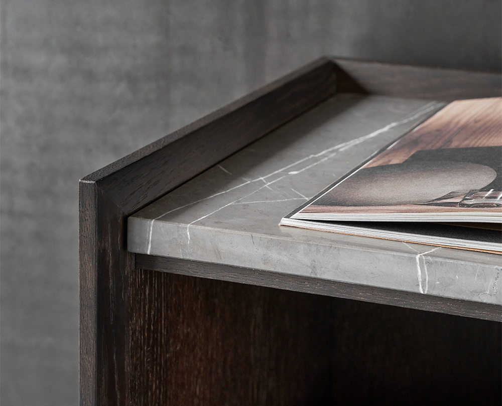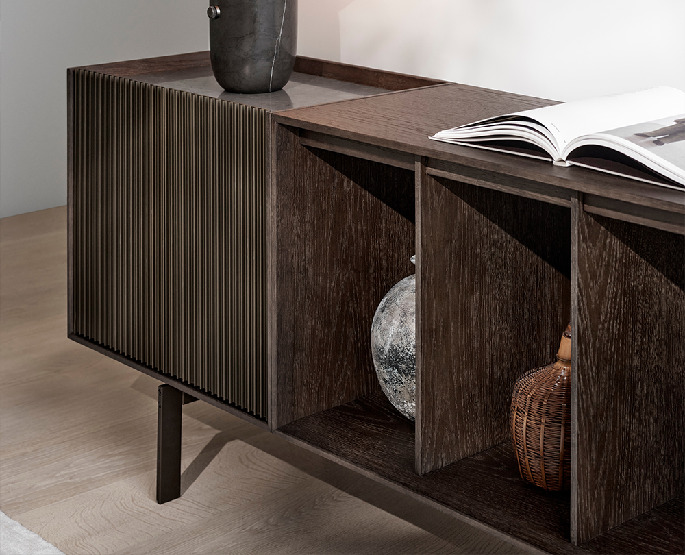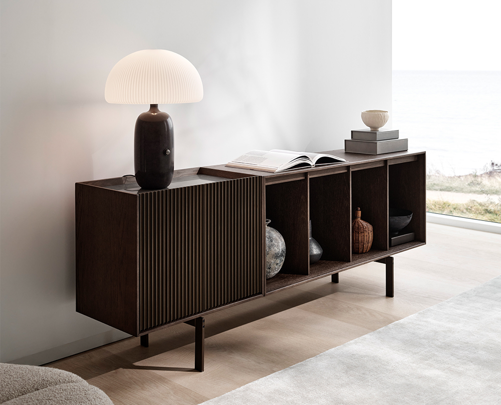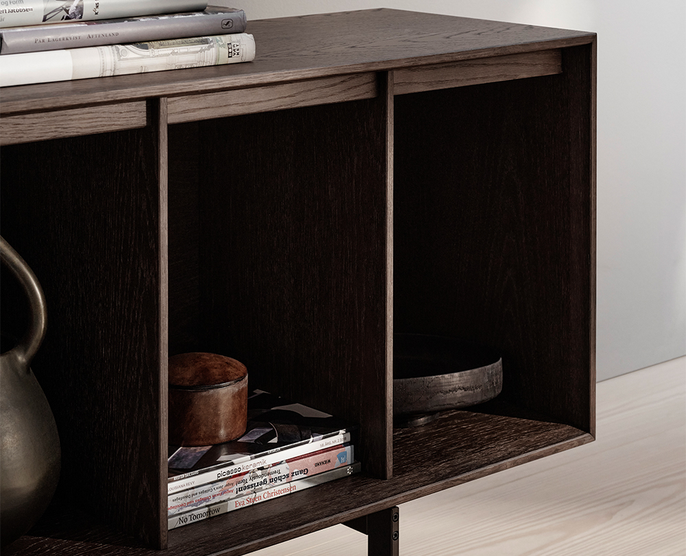 De kast is gemaakt van gefineerd donker eikenhout. De Vipp 675 Cabinet H1 kast heeft een hoogte van 68.1 cm, een lengte van 176.8 cm en een diepte van 38 cm. De kast biedt voldoende opbergruimte voor diverse spullen, van boeken en documenten tot servies en decoratie.