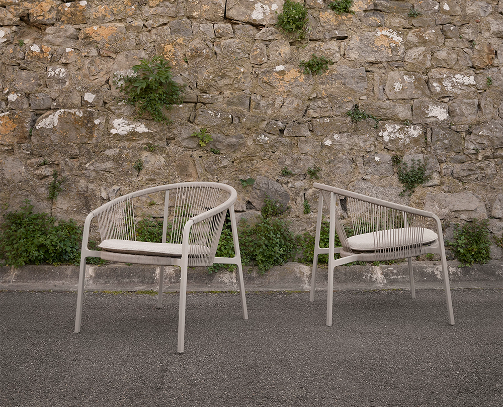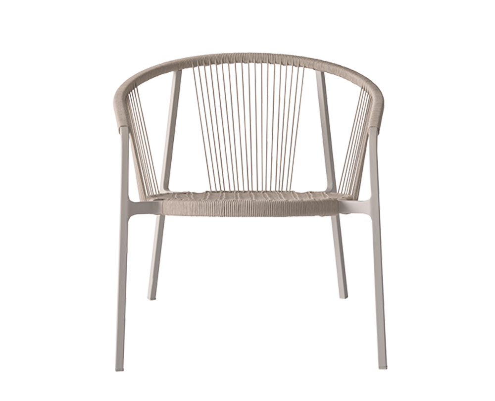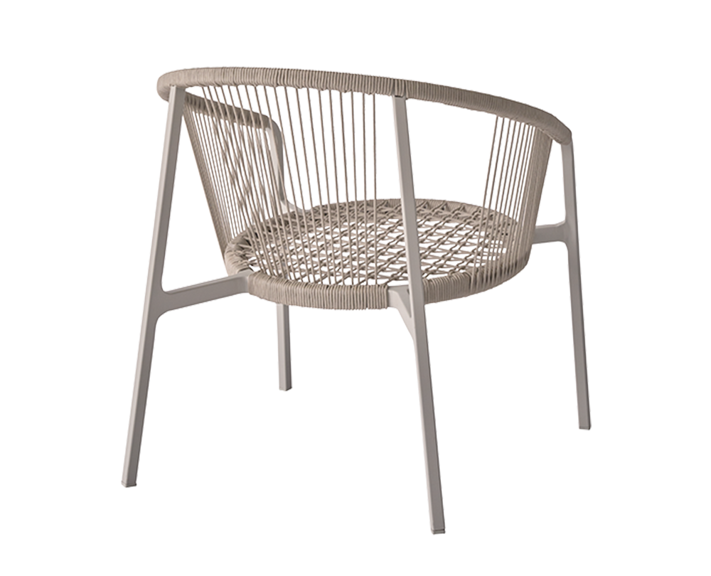 De Vipp 712 Lagrasse lounge fauteuil is een comfortabele, schuine buitenstoel van gepoedercoat aluminium met geweven koord en stapelbaar ontwerp. Optioneel uit te breiden met weerbestendige Dune-kussens voor extra comfort.