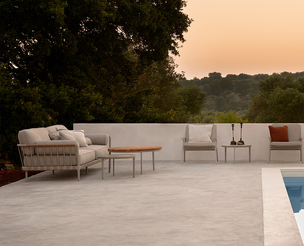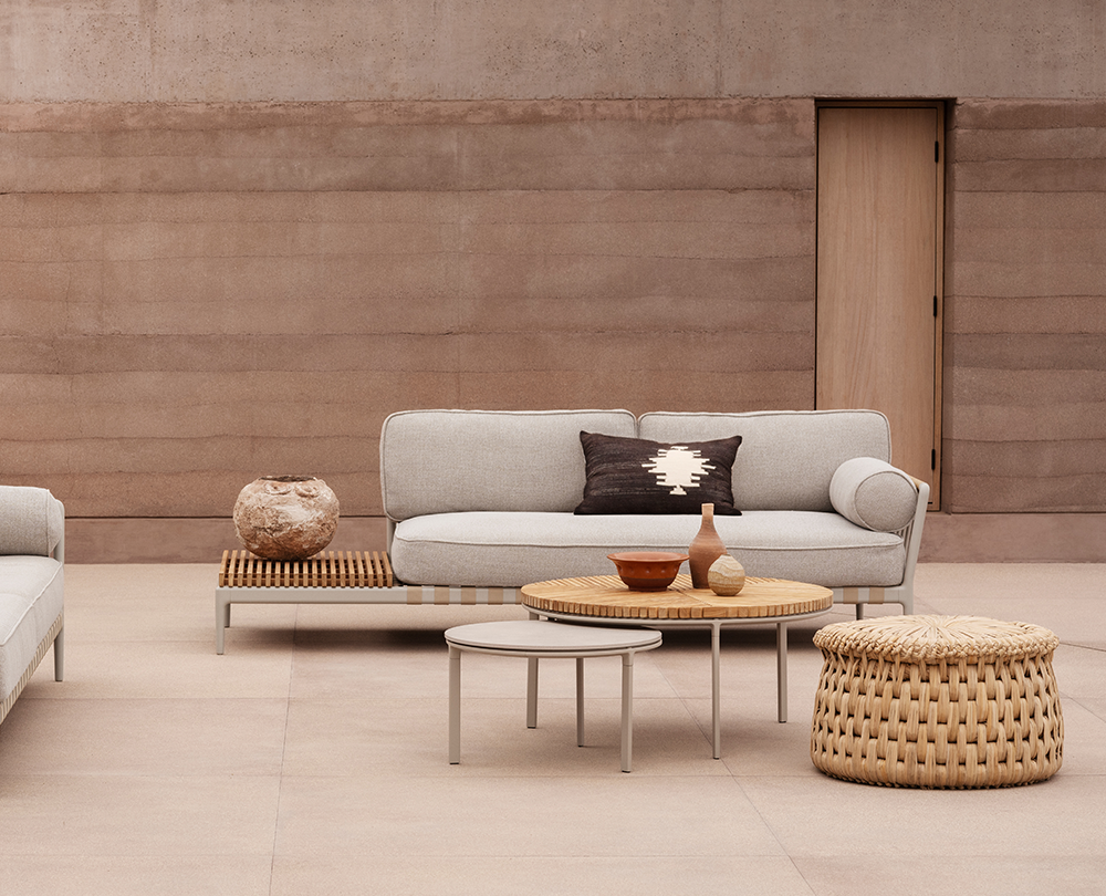 De salontafel is perfect om te combineren met andere Vipp Open-Air meubels om een complete en elegante buitenruimte te creëren.
